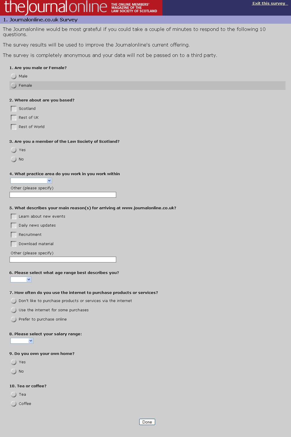 Come on JLSS, you did an otherwise great redesign of the website (we’re ignoring the Library ‘thing’ for just now), can you please not let it all down at the end with a silly, unfocussed survey?!