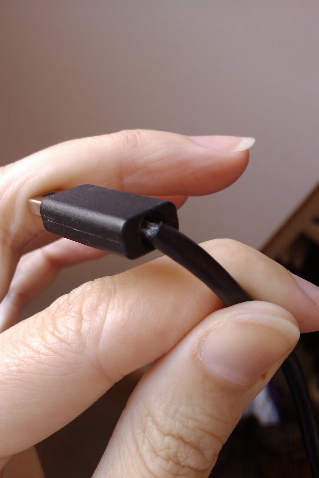 But a few weeks ago I noticed something: the end of the charger that plugs into the phone has wires showing, as you can see in the pic. I tend to think that tools that need electricity to flow into them will work best when that electricity doesn’t go elsewhere en route, like into me, via those exposed wires. And with time, those wires are only going to get more exposed.