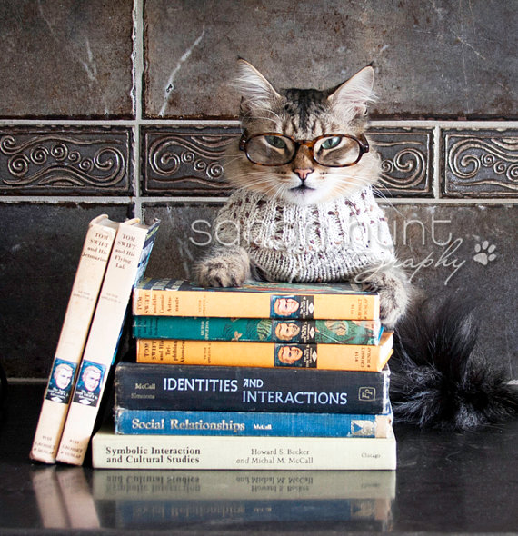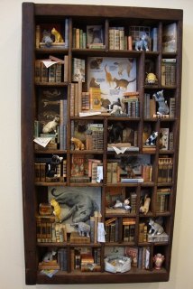 But, my vote for “the best thing to put on a library wall” is…an entire, miniature library. This one is on the theme of that traditional librarian favourite: cats.