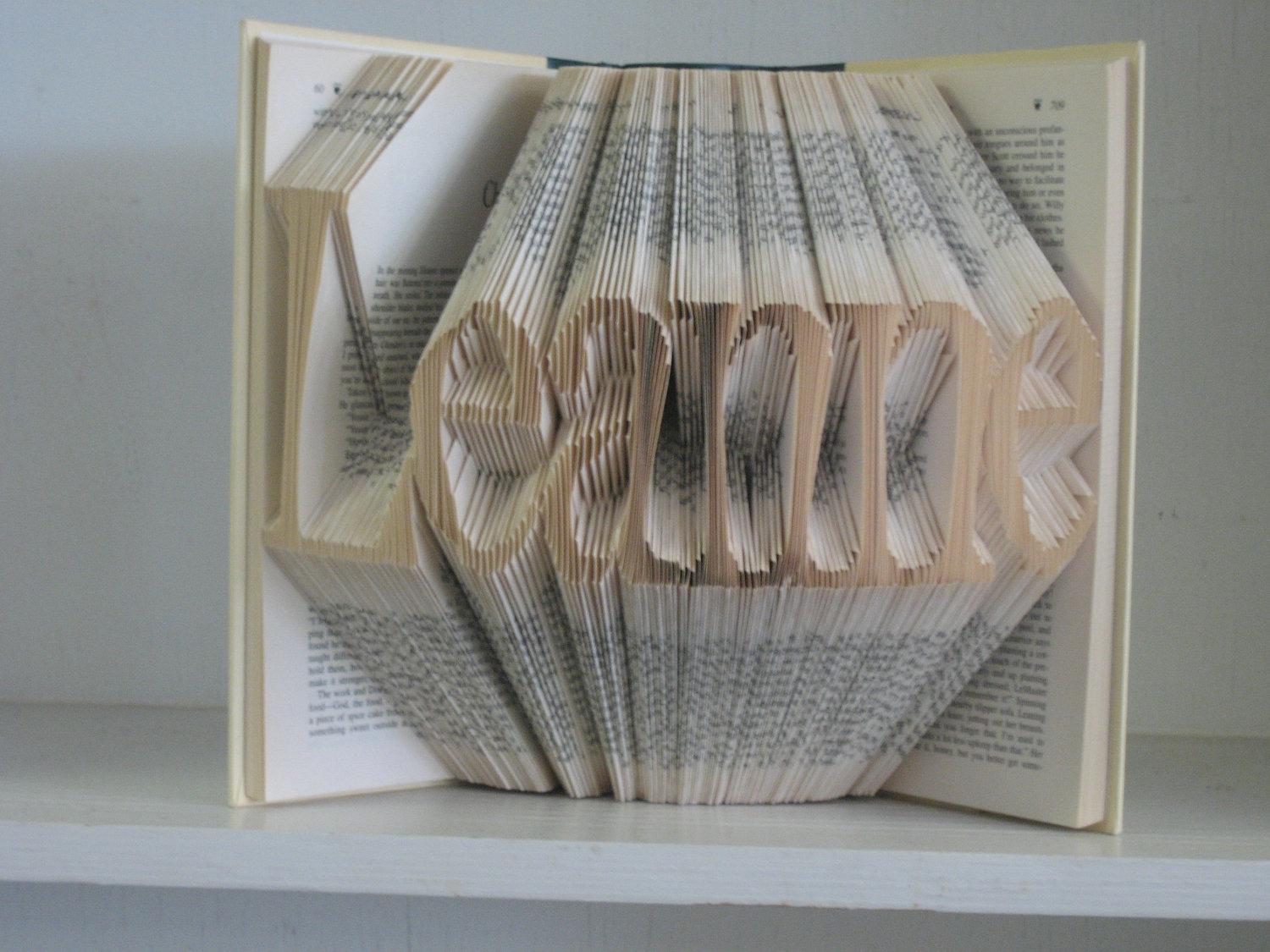 If you want to go all out for an insanely good book sculpture, you could invest in this sort of thing: