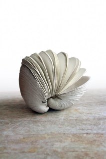 Book sculptures/folding is very popular on Etsy, so you can find plenty of “Christmas tree” shaped foldings, and even some shaped ones, like barrels, or pinch-waisted shapes. Even a pretty, sewn clamshell: