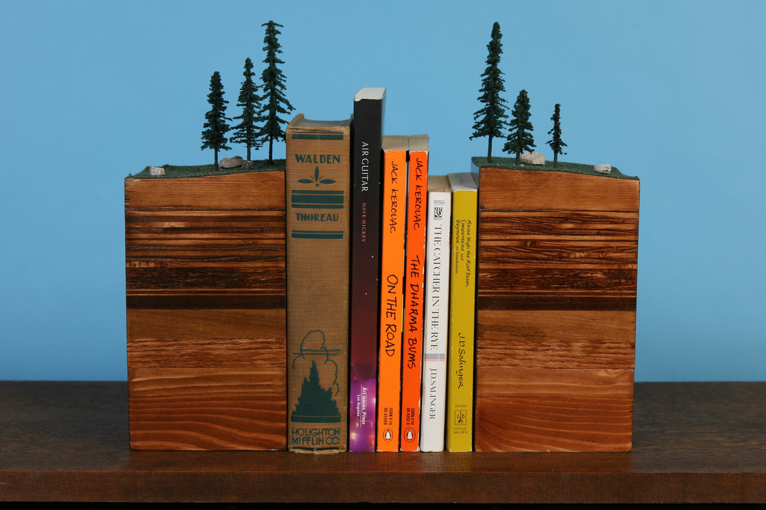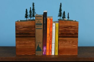 However, if you stick with a traditional bookcase style, you’ll need some bookends…how about keeping things in place with a slice of the outside world, and its strata?