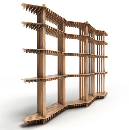 Of course, as a library geek, I keep a note of the nicest shelving solutions…hey, you never know when my employers might go mad and demand a redesign of the Library using only eco-friendly materials, or one entirely suspended from the ceiling, right?!?!
