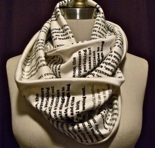 Of course, books aren’t just for reading, hiding, cutting up, and taking photos of. You can also adorn yourself with them, in all sorts of formats. So here’s a few examples of some snazzy book-based wearables.