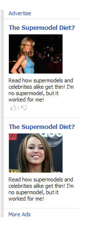 Rachel Ray diet (twice), 1,000,000 people can’t be wrong (Pink Patch ad, this one is particularly repetitive, 8 times out of 12 this replaced an ad I’d removed by rating it irrelevant!), the Pink Patch diet (same as the other one, but different format…this company must have an impressive advertising budget), Floristry courses at Bournville College, the GI patch (yet another diet offer!), free Samsung Tocco, Poor history credit card (multiple), Call worldwide for a month (some sort of phone plan), free PS3 with T-Mobile, Home in Cyprus and Greece, Instant payday loan, free Samsung Soul, Jobs in Oxfordshire (twice), Want a PS3 for £10.92? (auction site ad), The best of Dagenham, A few drinks tonight? (don’t know what this advertised, had website link but I didn’t go), birthday flowers, Bad credit history is ok, Non fault accident? (Ohhh, I could ‘claim today with Jim and Jane’!), Teeth whitening gel sale, Portugal, Sapin, Tenerife (travel company), Are you owed £2,000? (mis-sold loan payment insurance), Ibiza people meet (Ibiza social network).