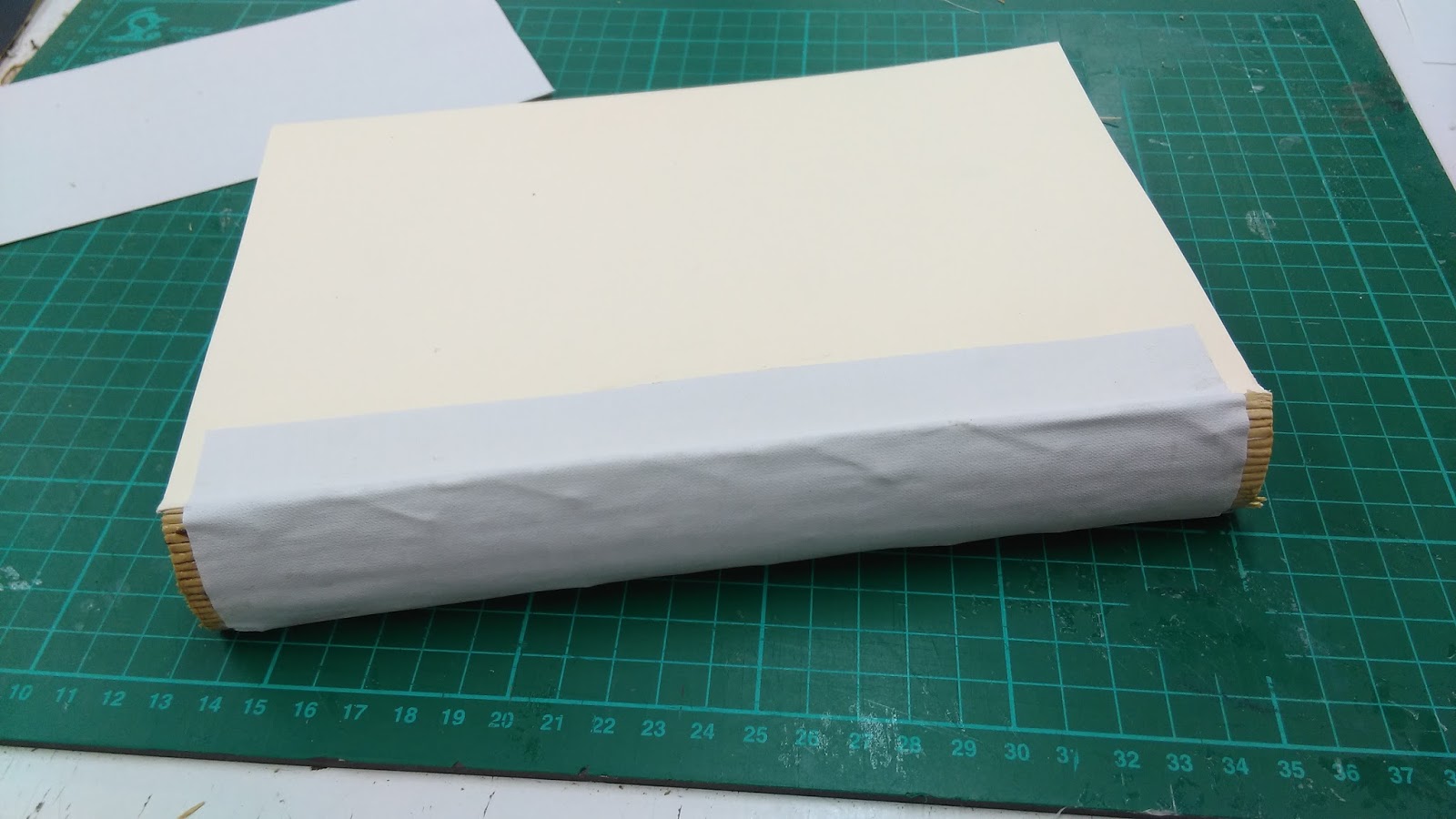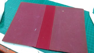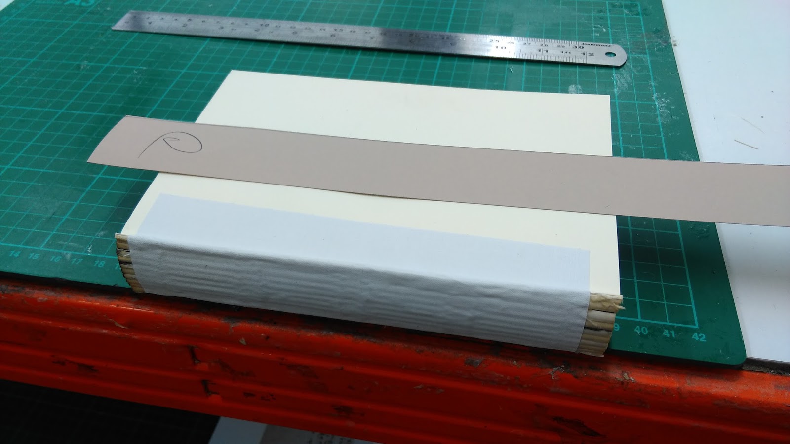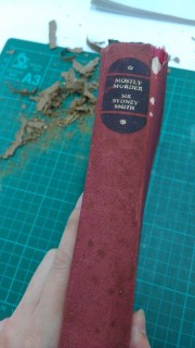 Next, the spine needed to be replaced. This was done with some thin card, and it needed to be measured up against the size of the original book.