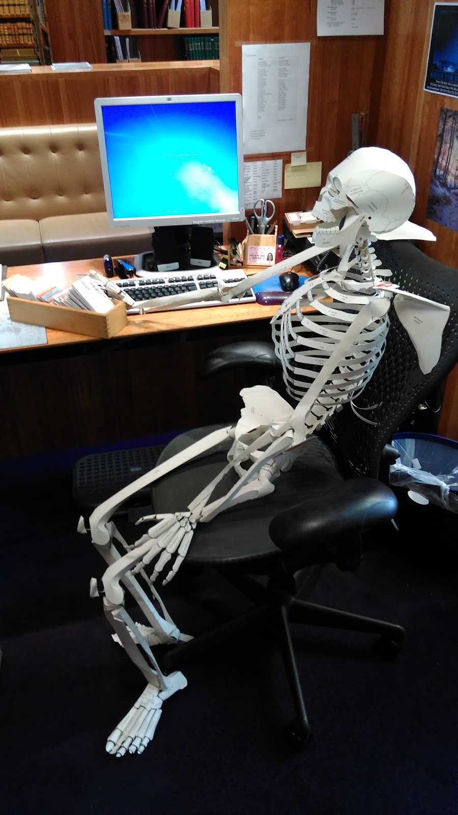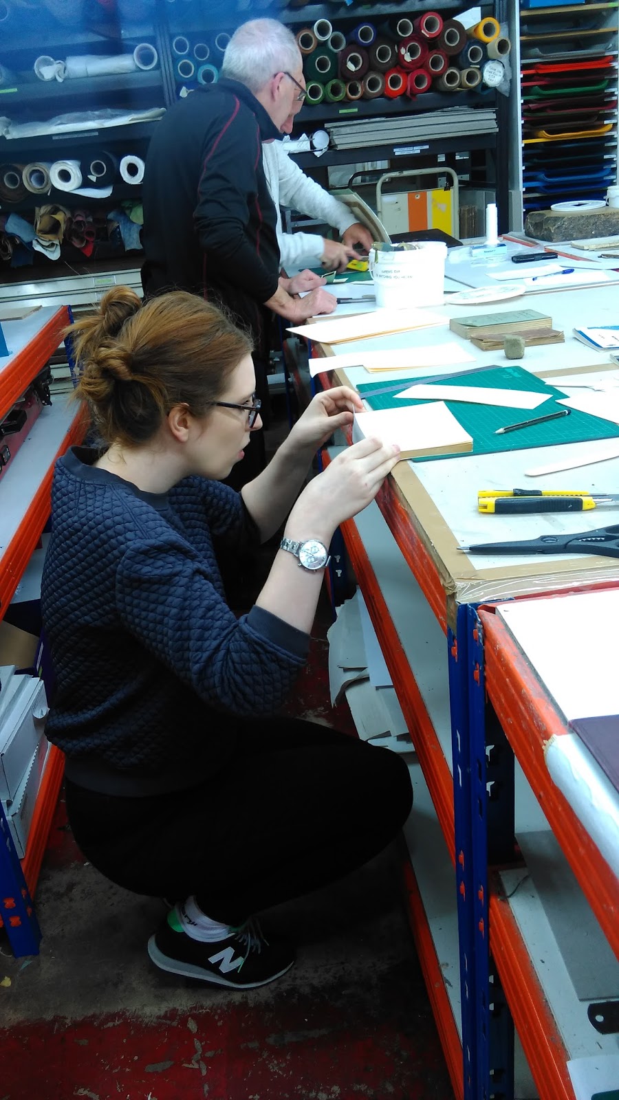 | My colleague being instructed on how to put her collection of loose pages into a new hardback cover |