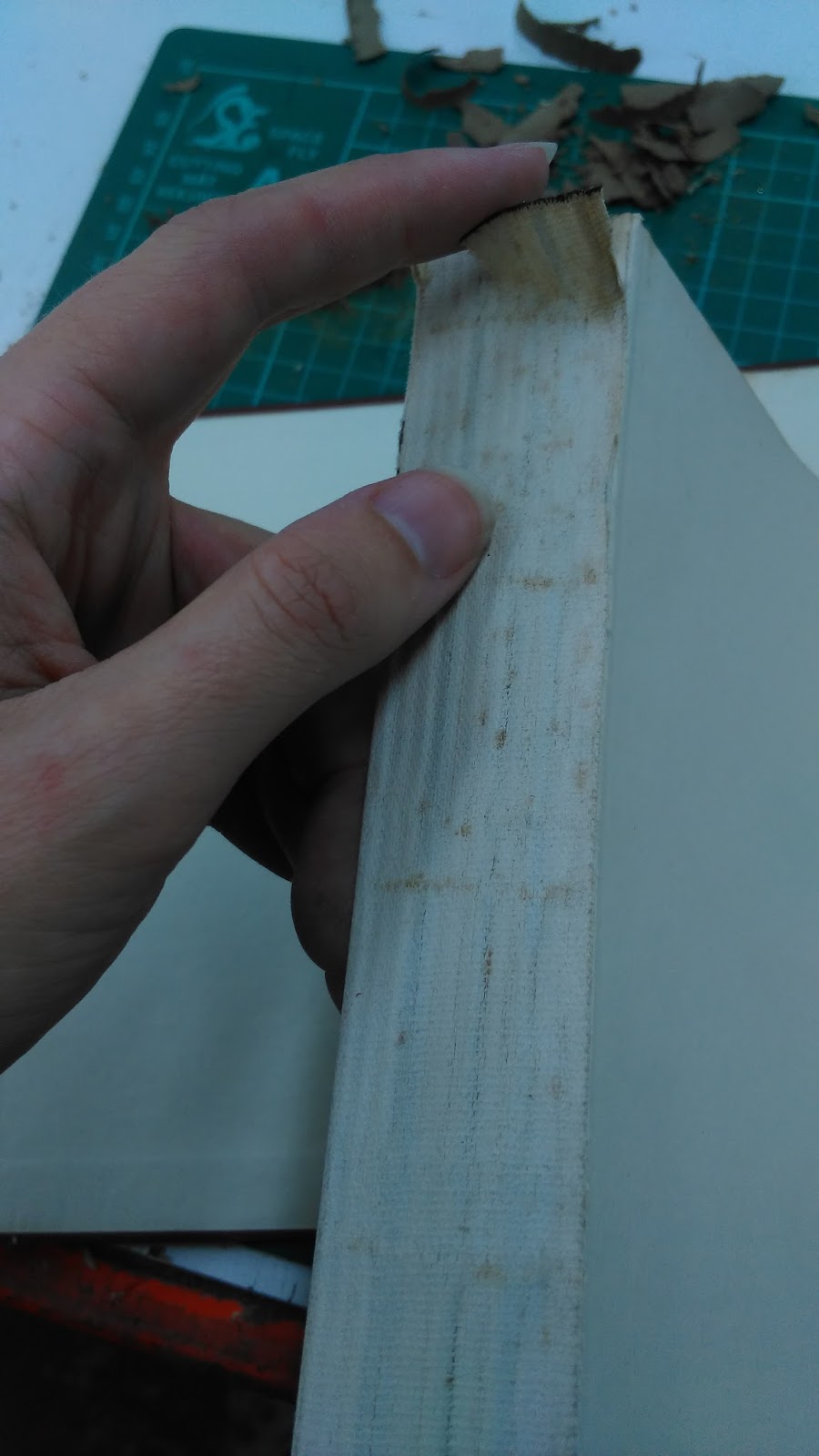 Once the “shell” of the books had been removed, the old glue and paper from the spines needed to be removed too.