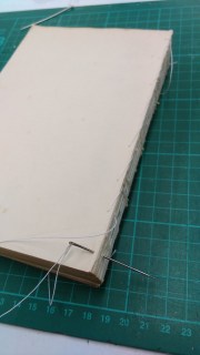 Once the spines were dry, I moved on to securing the book into the shell by gluing the end papers and text block on to the boards and the spine, and that was mine…done!